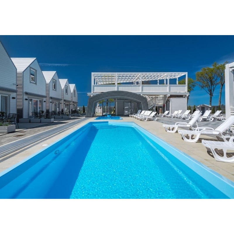 Piękny, czysty, nowy domek. Blisko na plażę. Basen i brodzik z podgrzewaną wodą, dzieci nie chciały chodzić na plażę. Strefa SPA. Baaardzo mili właściciele i obsługa. Pozdrawiamy, na pewno wrócimy.